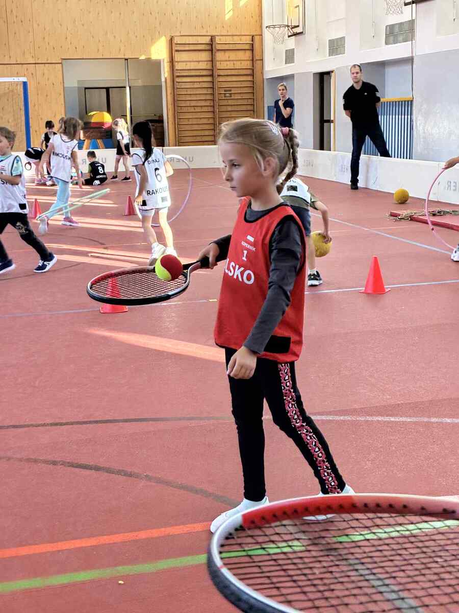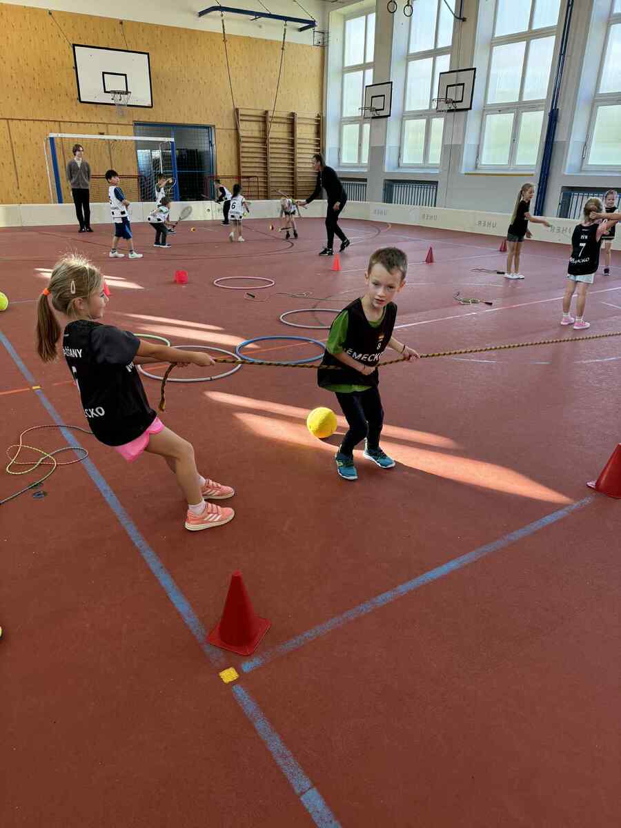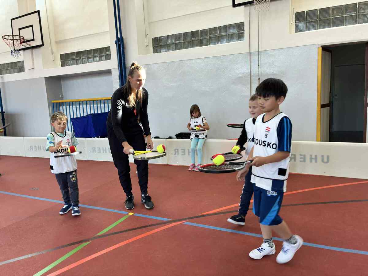 Novinky/Informace | 1.B | Publikováno dne 30. 09. 2025 | Publikoval Mgr. Monika SvozilováDnes nás opět navštívil trenér z projektu Trenéři do škol, tentokrát trenérka tenisu. Děti si s nadšením vyzkoušely první tenisové pohyby a hry s míčky. Byla to pro ně nová zkušenost, která je moc bavila.