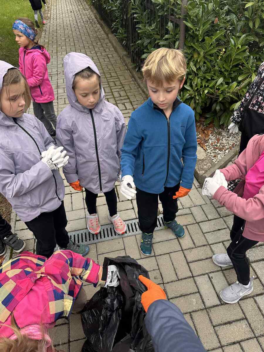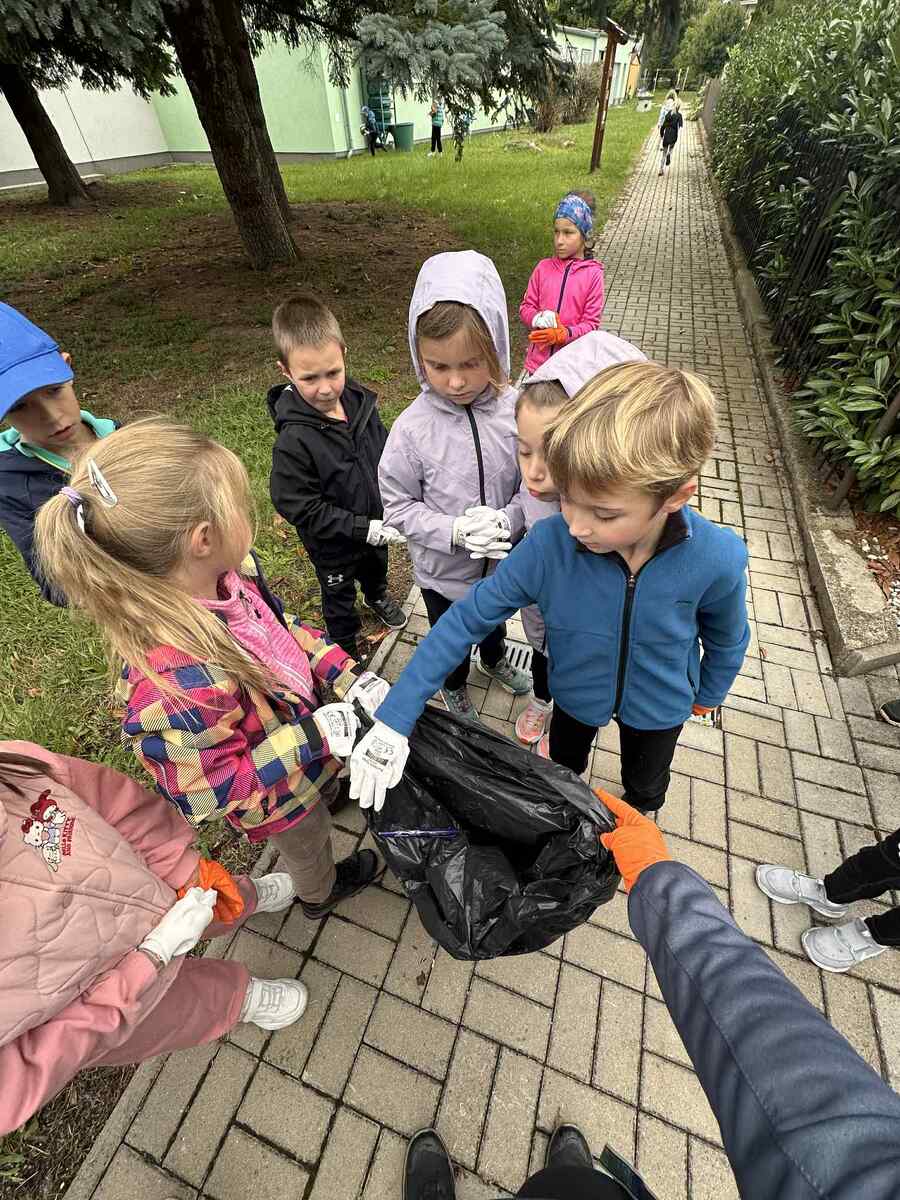Fotografie | 1.C | Publikováno dne 17. 09. 2025 | Publikoval Mgr. Veronika GoldenVe středu se naši prvňáčci zapojili do akce Ukliďme Česko. Dopoledne jsme začali ve třídě, kde jsme si povídali o tom, proč je důležité třídit odpad, jak správně odpadky rozdělovat a proč je nikdy nemáme odhazovat do přírody. Děti se také dozvěděly, co znamená pojem černá skládka a proč je nebezpečná. Nešlo ale jen o povídání – zkoušeli jsme si i praktické třídění odpadu do barevných kontejnerů.