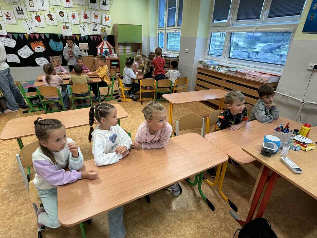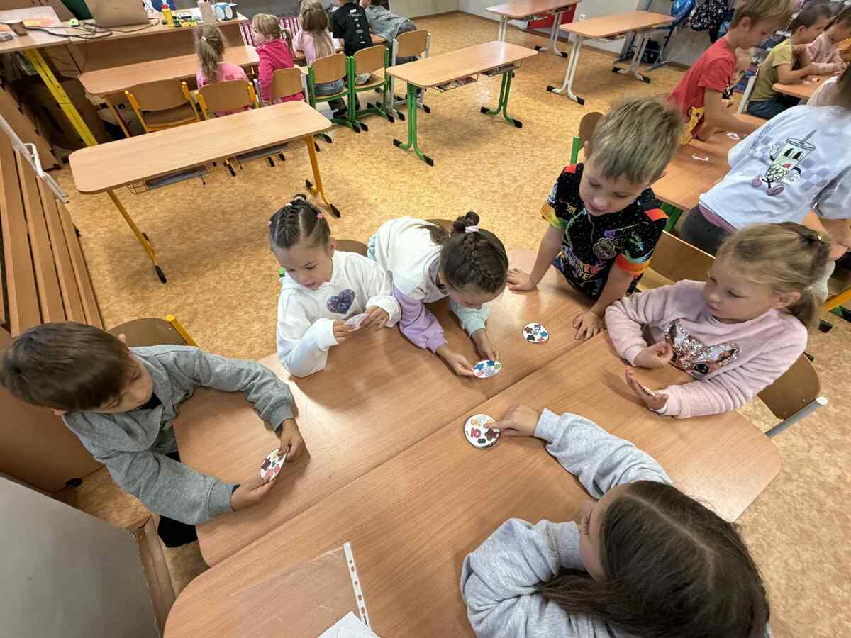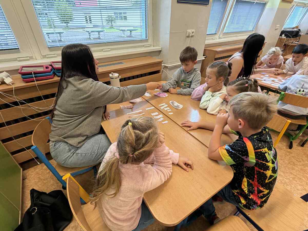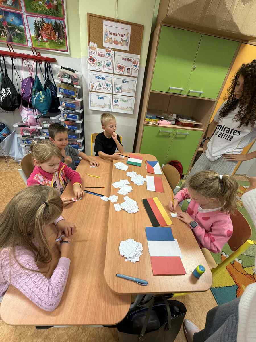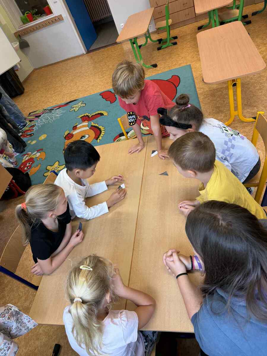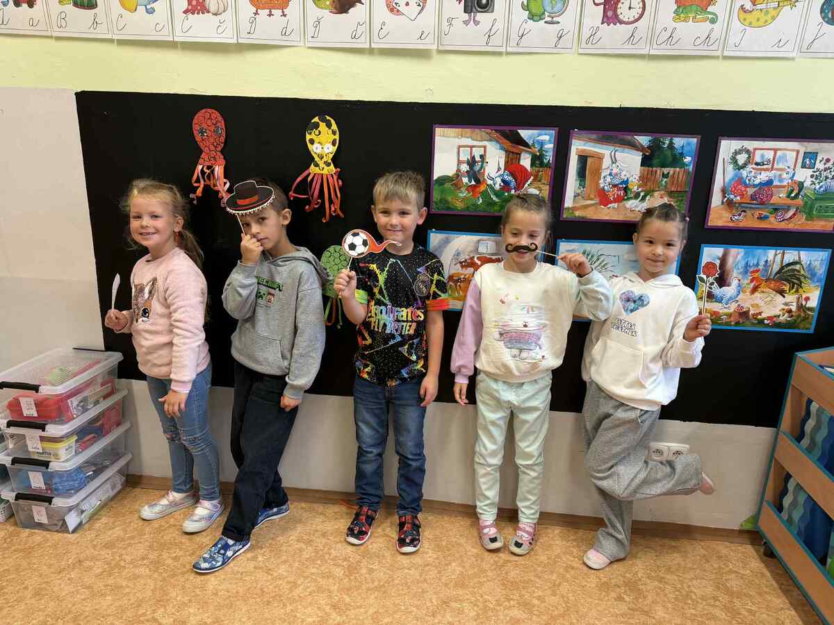 Fotografie | 1.C | Publikováno dne 26. 09. 2025 | Publikoval Mgr. Veronika GoldenDnešní dopoledne bylo jiné než obvykle. V rámci Evropského dne jazyků si žáci prošli 12 zábavných stanovišť, která pro ně připravili deváťáci. Společně skládali puzzle evropských vlajek, hráli animal kvíz, poznávali barvy v cizích jazycích, učili se německá slovíčka nebo se fotili ve španělském fotokoutku.
