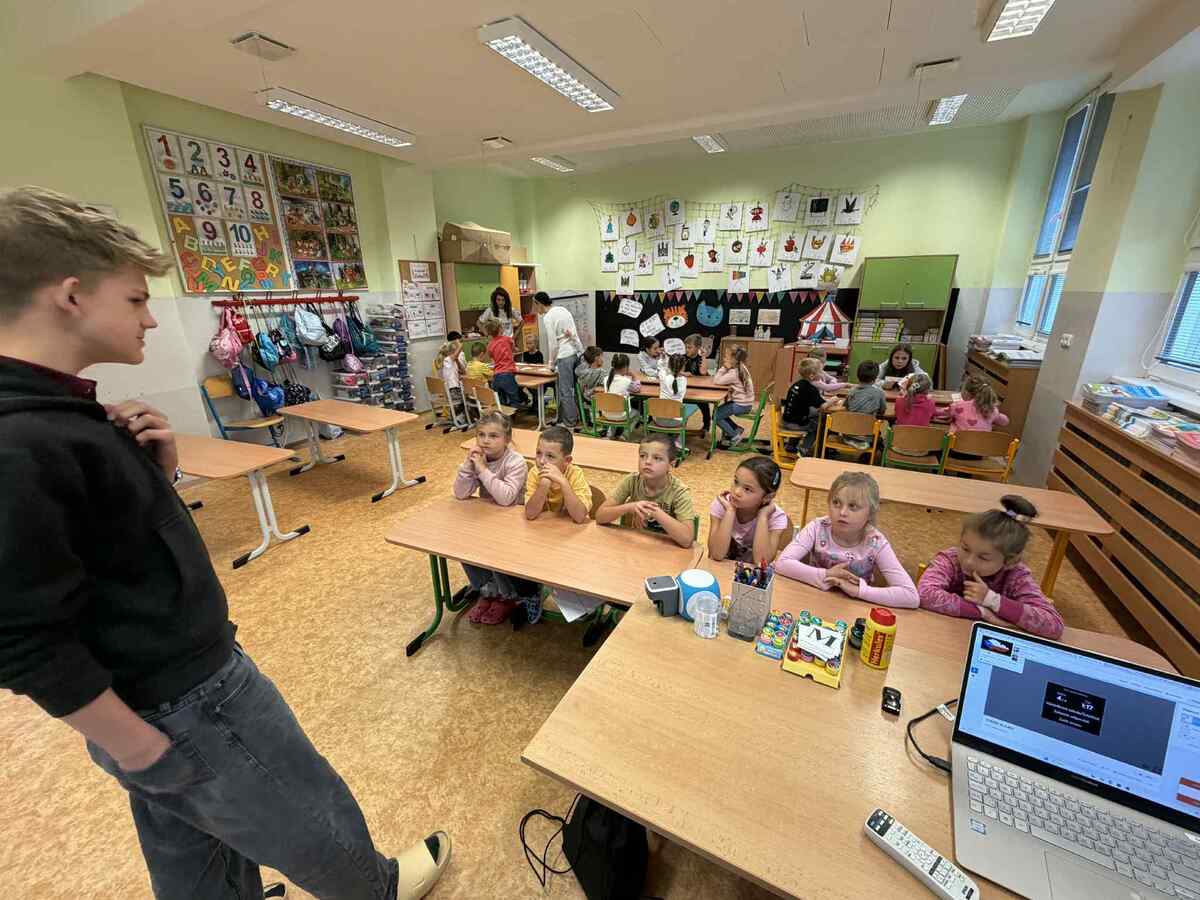 Deváťáci se tak na chvíli proměnili v učitele a pomáhali těm mladším objevovat svět jazyků hravě a zábavně. Bylo to dopoledne plné smíchu, nových slov i skvělých zážitků.