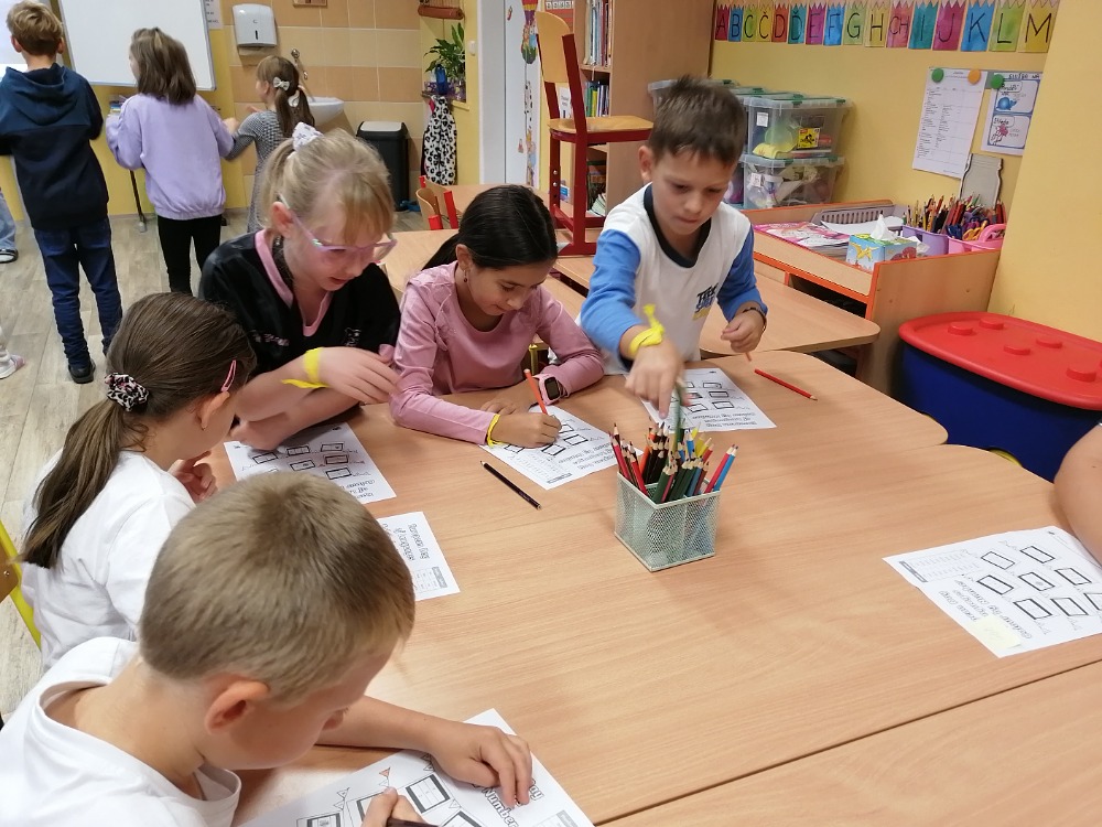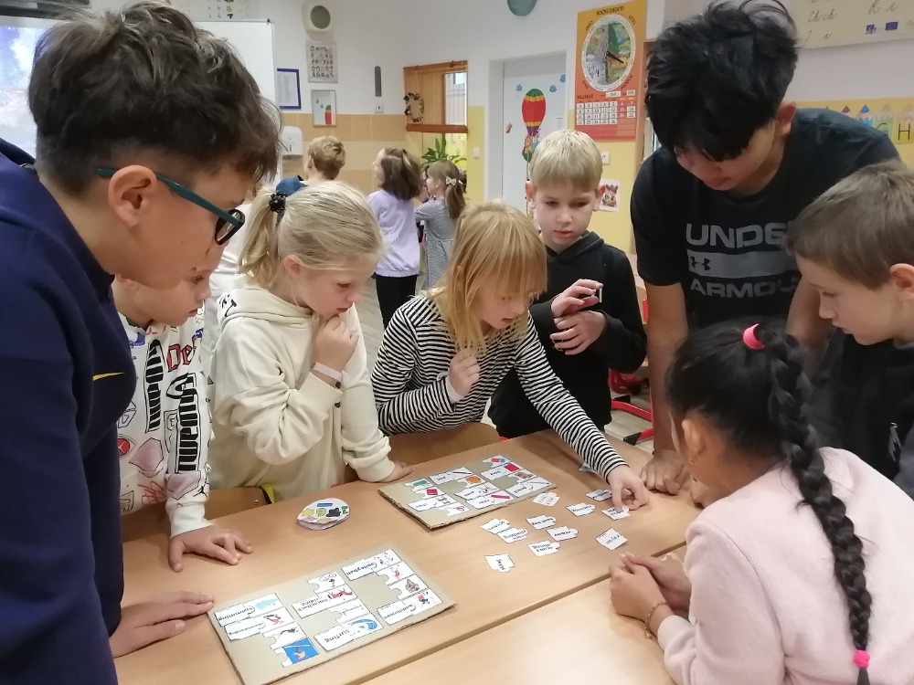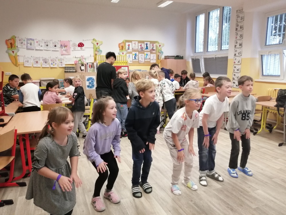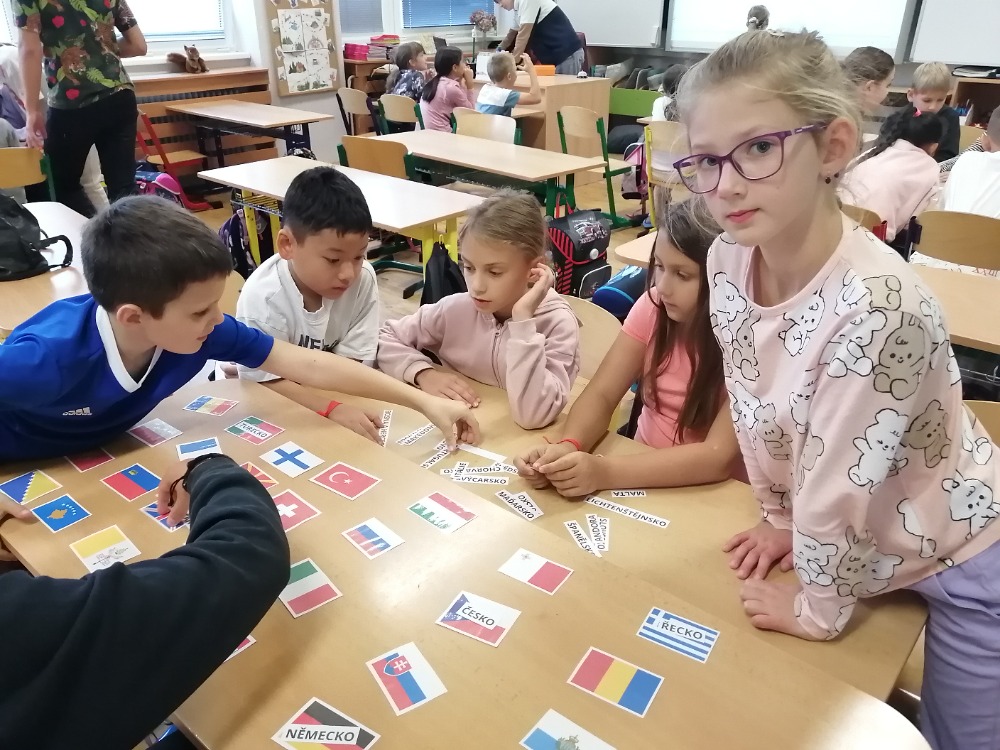 Fotografie | 2.B | Publikováno dne 27. 09. 2025 | Publikoval Mgr. Alena HrdinováV pátek 26.9. jsme zapojili do projektu Evropský den jazyků. V rámci toho pro nás mladší připravili spolužáci z 9. tříd spoustu zajímavých úkolů.