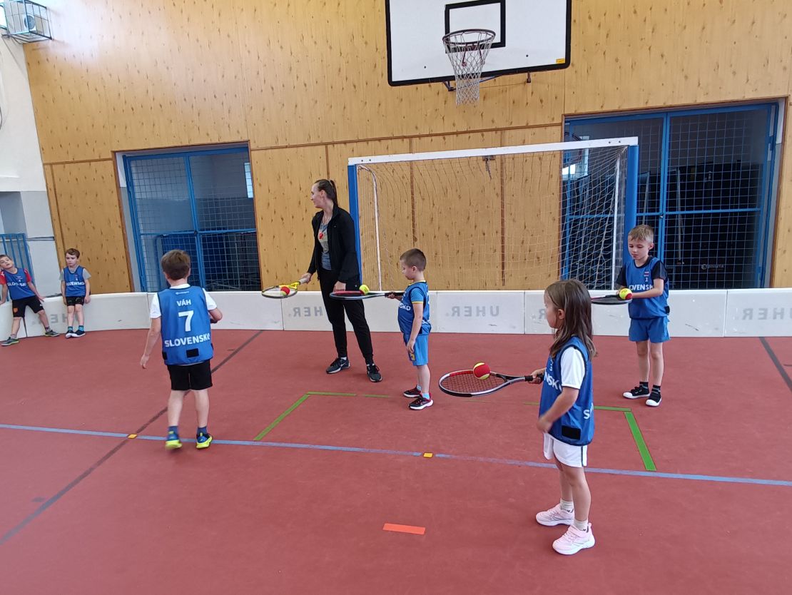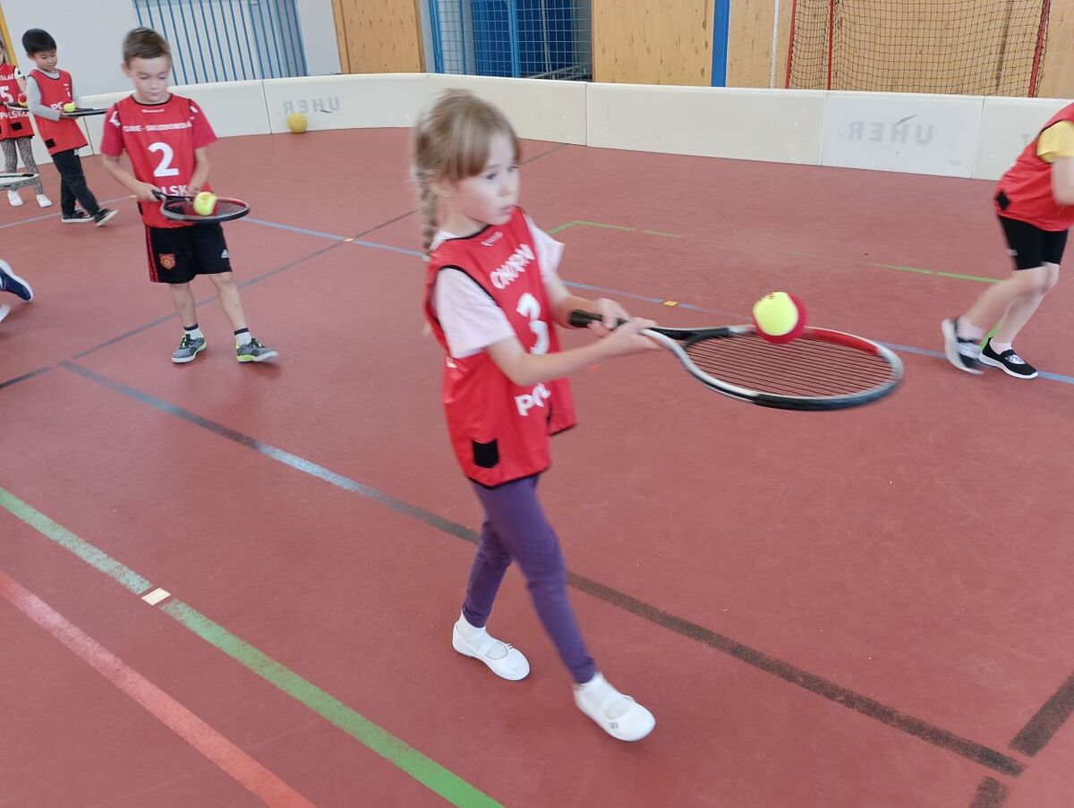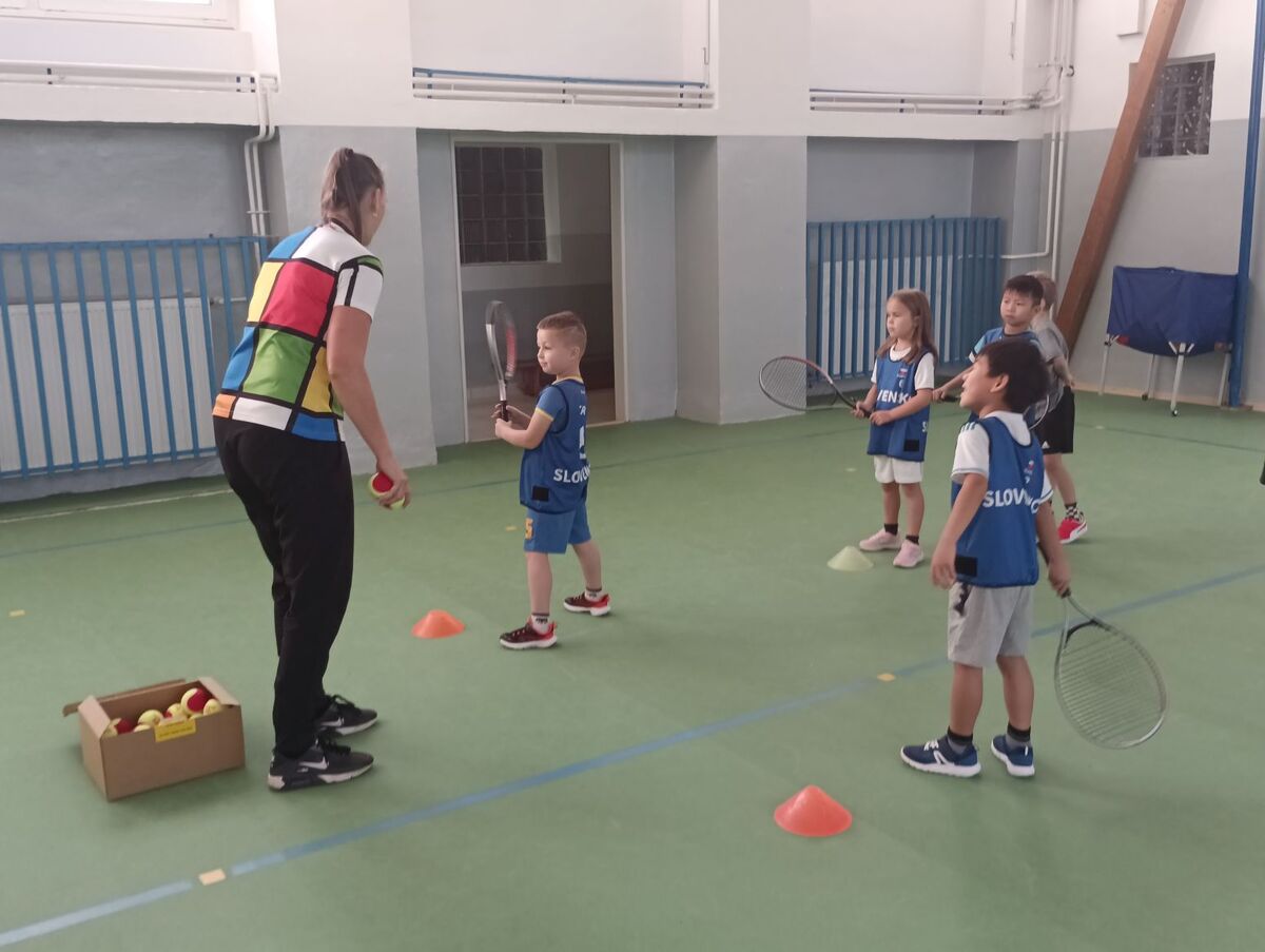 Fotografie | 1.A | Publikováno dne 01. 10. 2025 | Publikoval Mgr. Kamila BoušováPo celý školní rok budou chodit do hodin tělesné výchovy trenéři z různých sportovních oddílů. Tentokrát měly děti možnost vzít si do ruky tenisovou raketu a vyzkoušet si něco z tenisové průpravy.