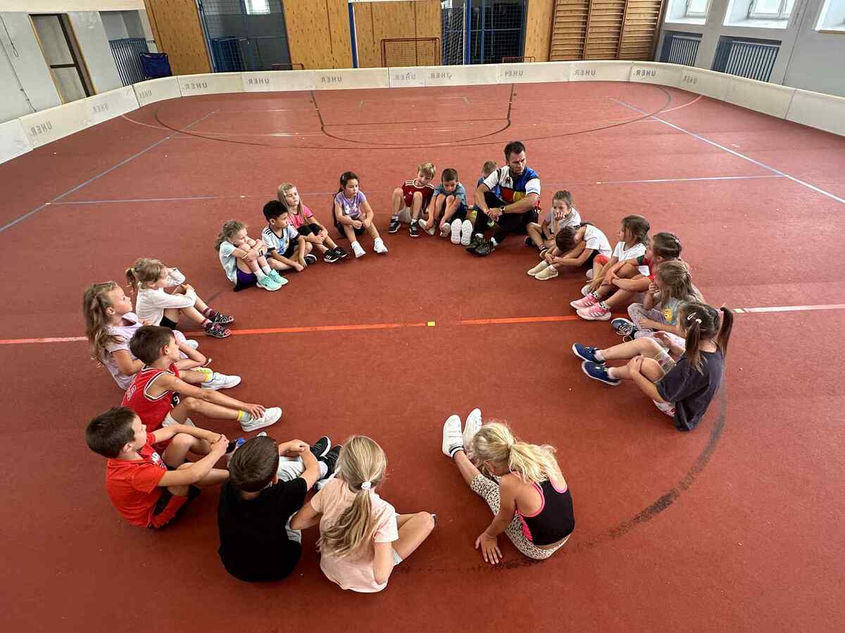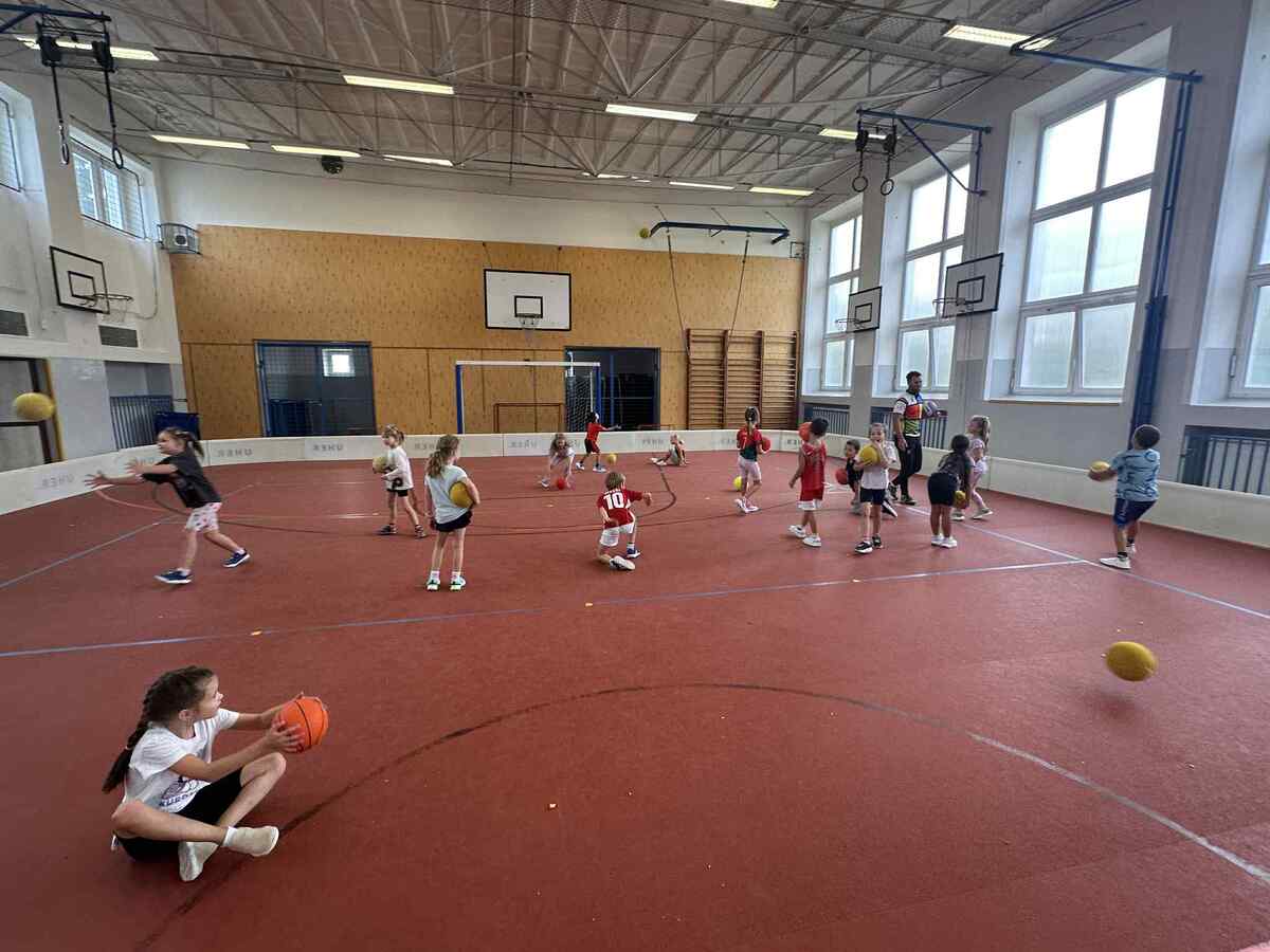 Fotografie | 1.C | Publikováno dne 23. 09. 2025 | Publikoval Mgr. Veronika GoldenNaši prvňáčci mají každý týden v úterý hodinu tělesné výchovy trochu jinak – zveme si trenéry do škol, kteří děti vedou k pohybu zábavnou formou.