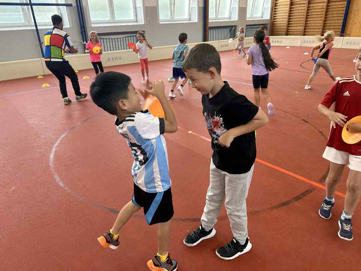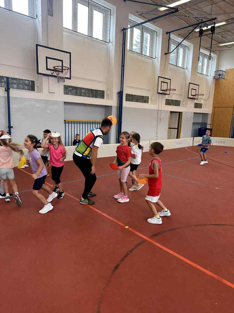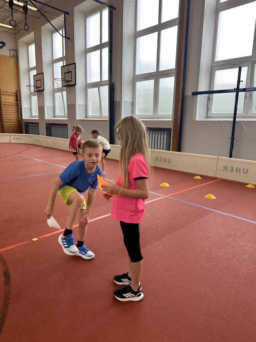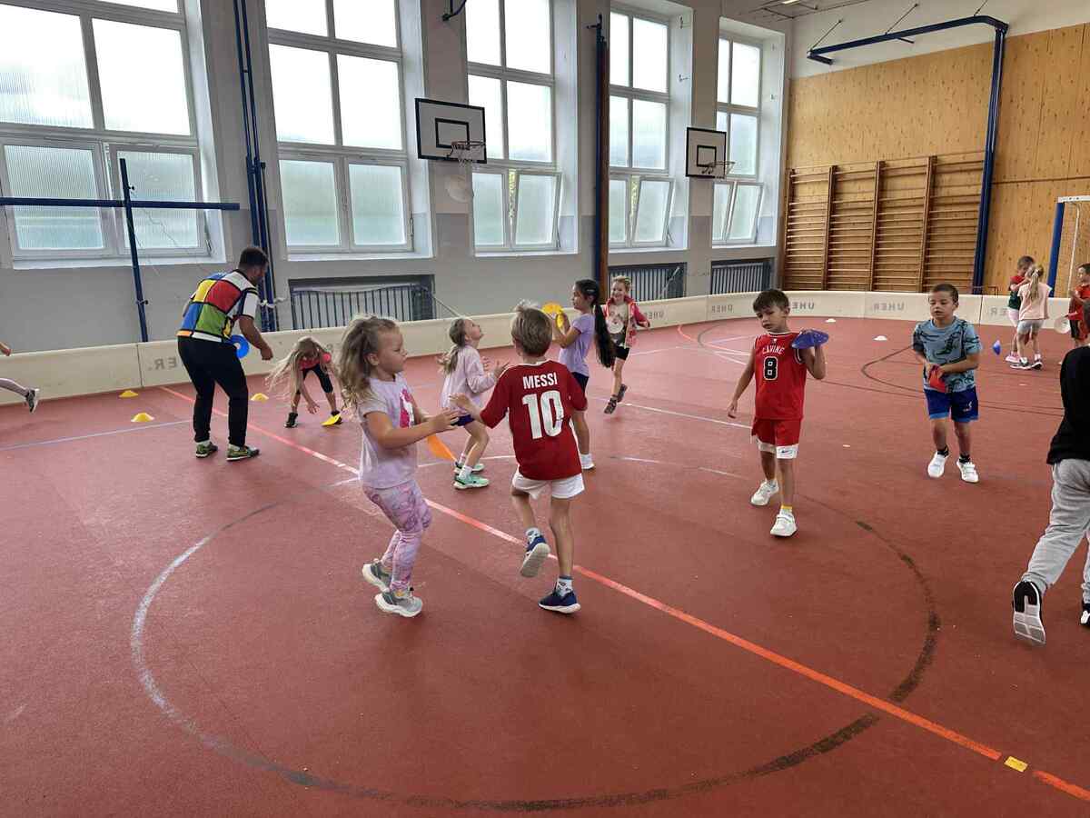 Prvňáčci si lekci moc užili a odcházeli s úsměvem i červenými tvářemi. Děkujeme trenérovi za pestrou hodinu a už se těšíme na další sportovní setkání!