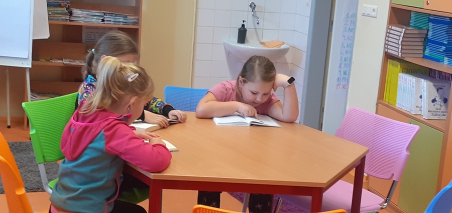 S dětmi jsme navštívili školní knihovnu, kde nám paní učitelka vysvětlila pravidla knihovny a jak se ke knížkám máme chovat. Návštěva ve školní knihovně se nám líbila. Do každé knihy patří záložka a nezapomínáme na pobyt venku..