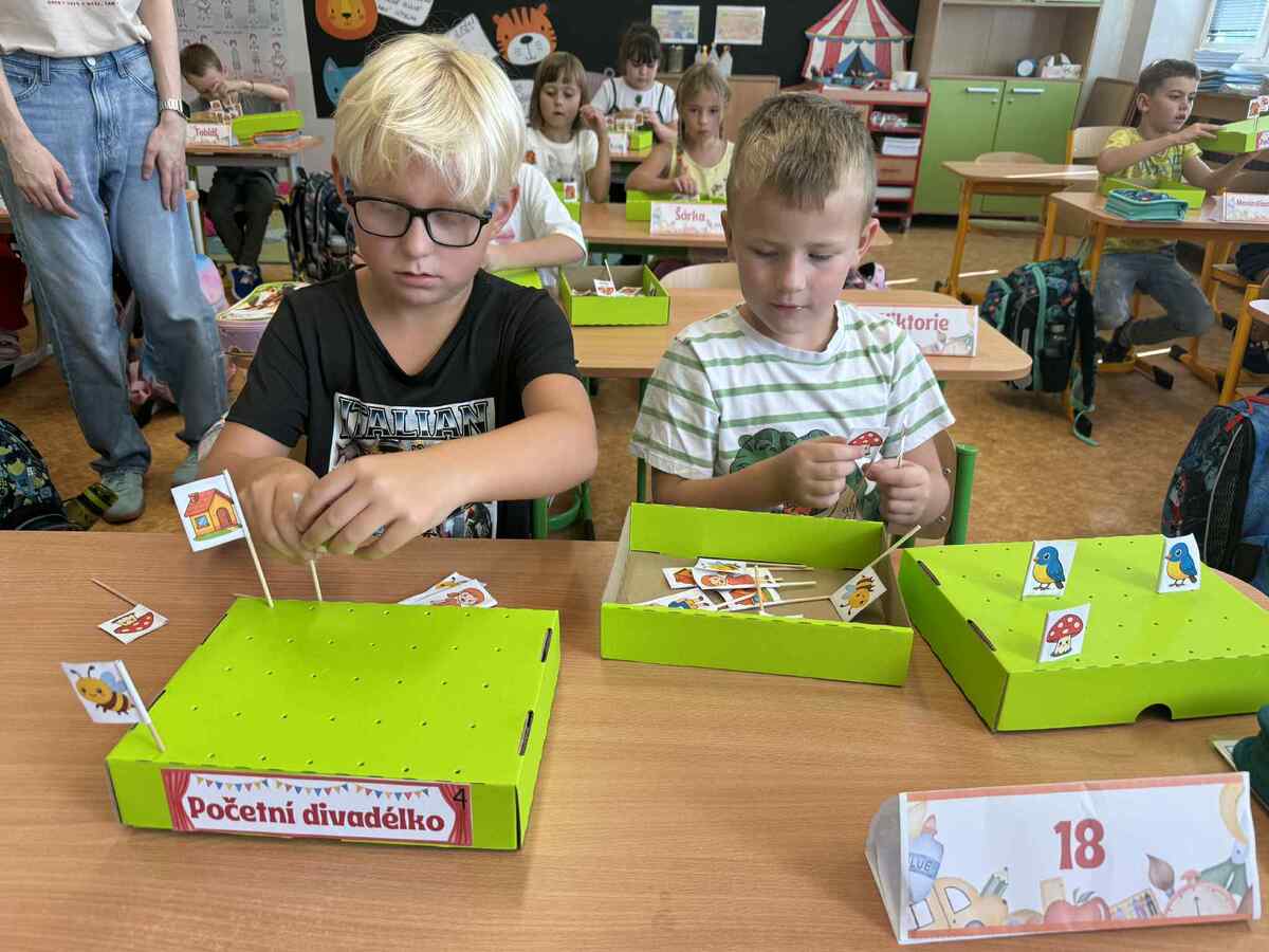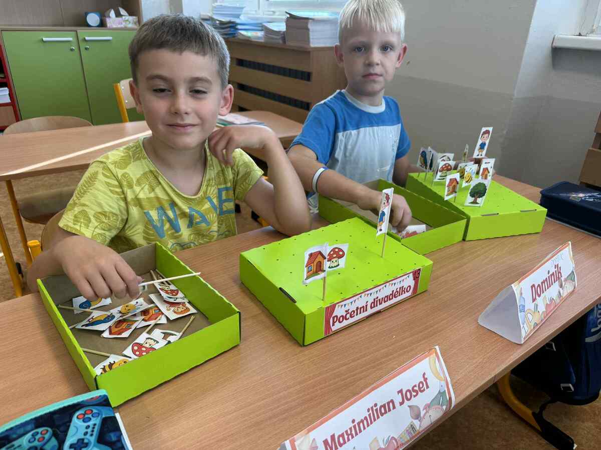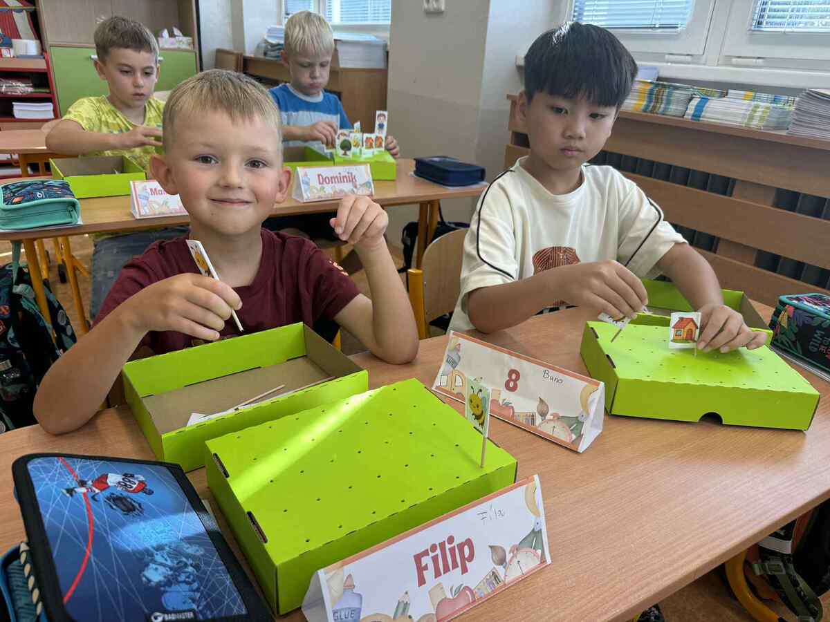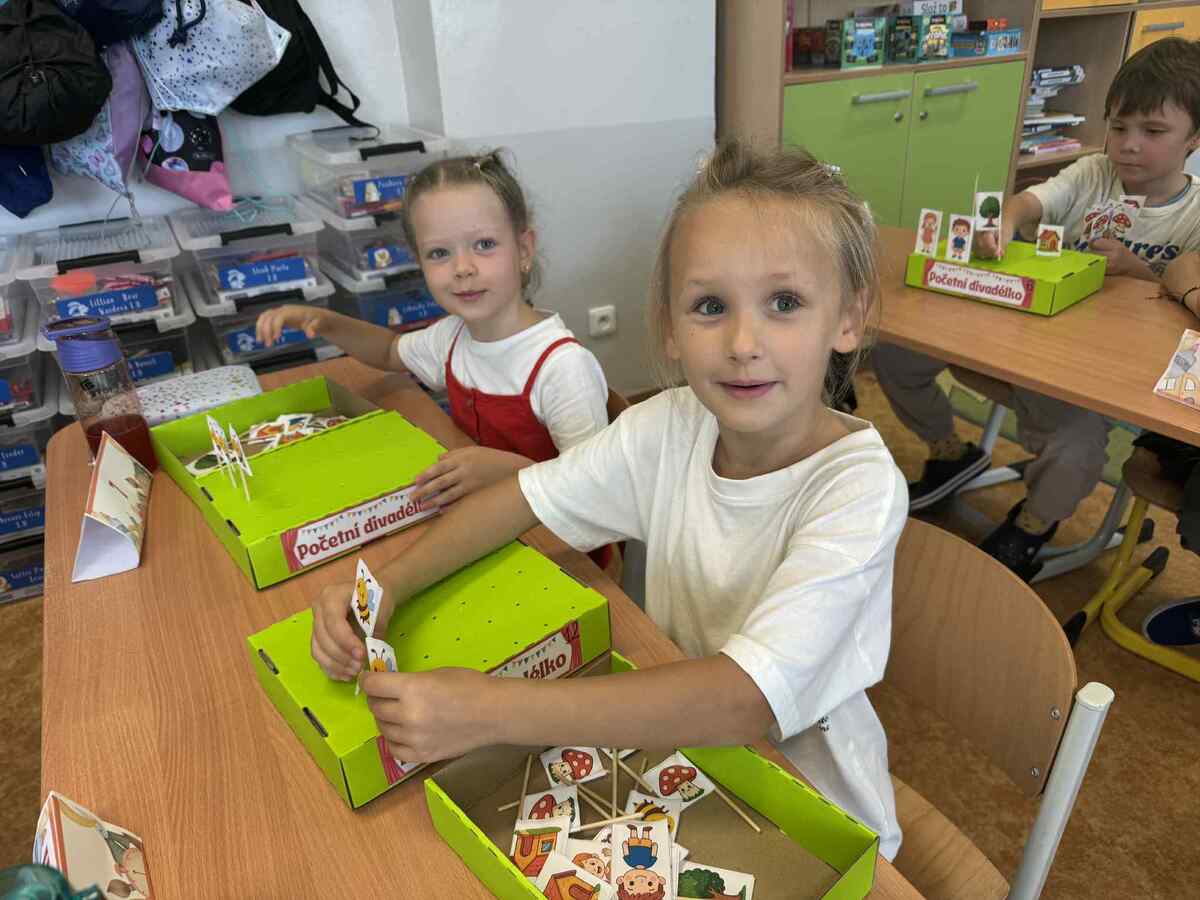Fotografie | 1.B | Publikováno dne 08. 09. 2025 | Publikoval Mgr. Monika SvozilováMáme za sebou první dny školy a ve třídě se už cítíme jako doma. Společně jsme si prohlédli všechny koutky třídy, pohráli si a seznámili se s pomůckami, které budeme celý rok používat.