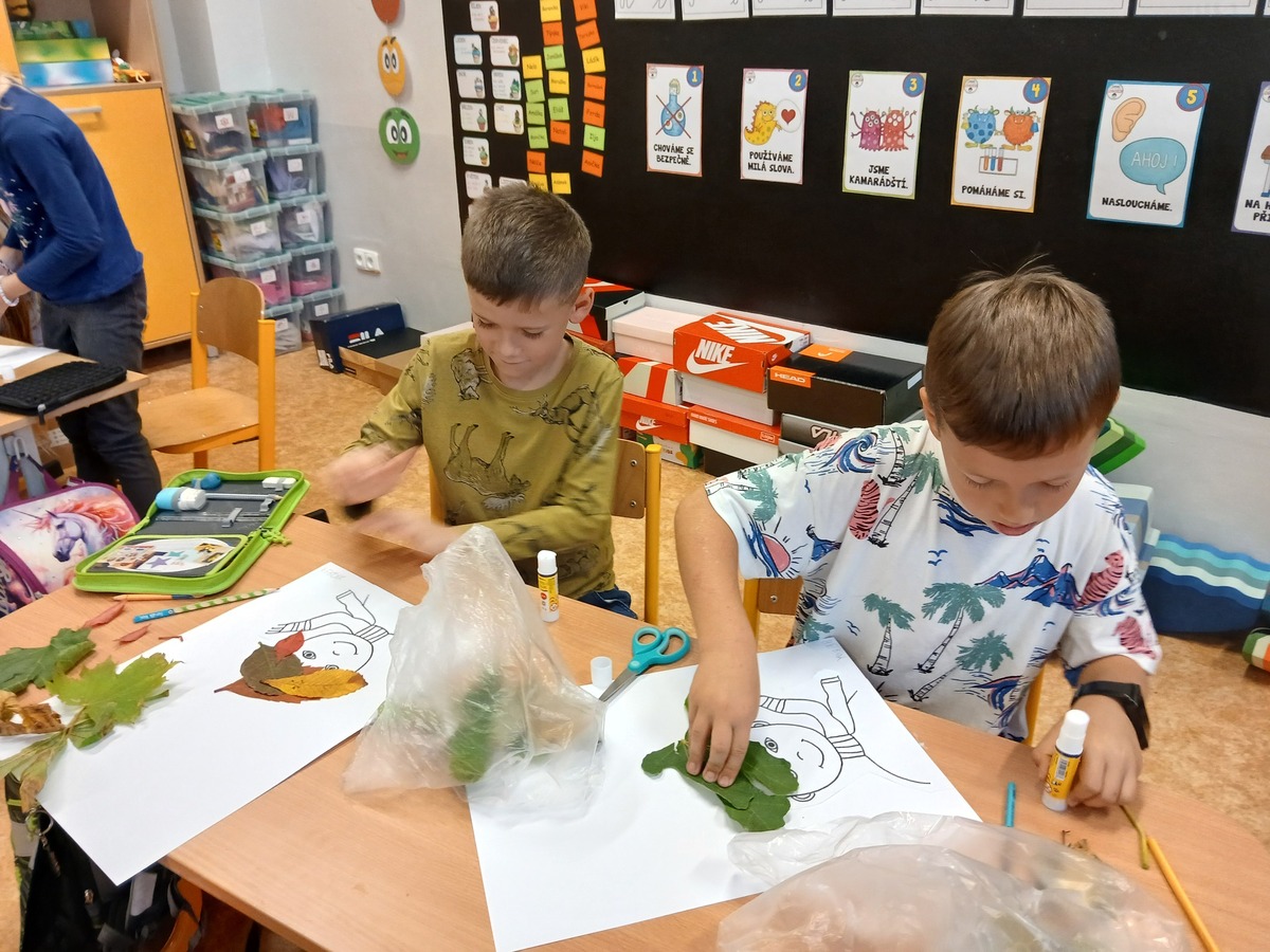 Fotografie | 2.A | Publikováno dne 12. 10. 2024 | Publikoval Mgr. Klára StehlíkováPodzimní počasí začíná a my si chtěli vytvořit obrázky z listů. Děti si s úkolem poradily a přinesly rozmanité listy. Z nich pak vytvářely podzimní účesy.