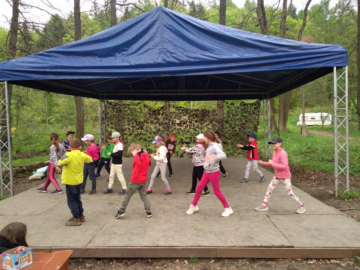 Fotografie | 5.A | Publikováno dne 11. 05. 2023 | Publikoval Mgr. Klára StehlíkováDnešní den byl s vychovatelkou Šárkou. Dopoledne děti hledaly mapu k pokladu, ale musely se vypořádat s příšerami, které mohly porazit pomocí kartiček, které získaly v předchozí hře. Odpoledne potřebovaly získat ještě zásoby v hondbě za pokladem, a tak musely plnit úkoly na stanovištích. V podvečer nás čekala soutěž Pirát má talent. Děti nacvičily taneček pirátů a dívky měly připravenou gymnastickou sestavu. Povedlo se, představení se líbilo, jsou to šikulky.