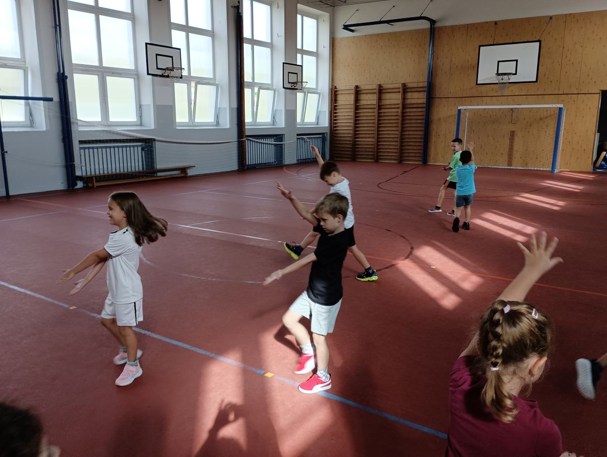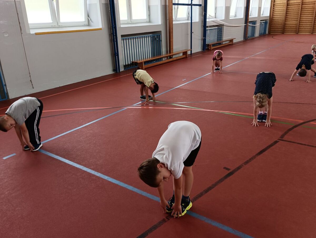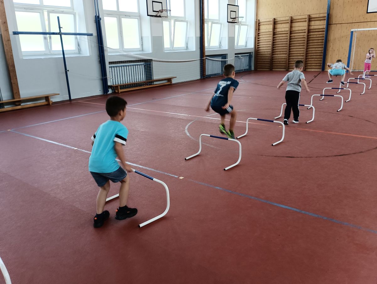Fotografie | 1.A | Publikováno dne 11. 09. 2025 | Publikoval Mgr. Kamila BoušováPři tělesné výchově si hrajeme na zvířátka, skáčeme přes překážky, házíme s míčem.