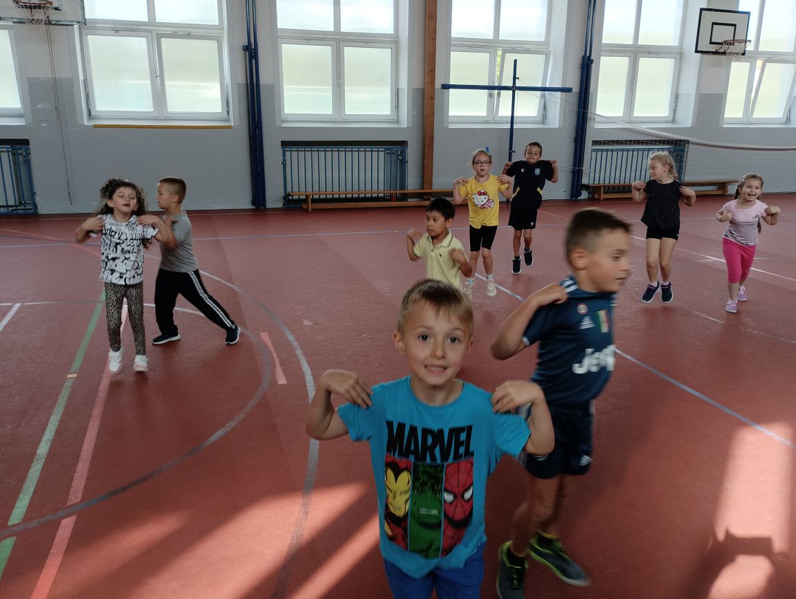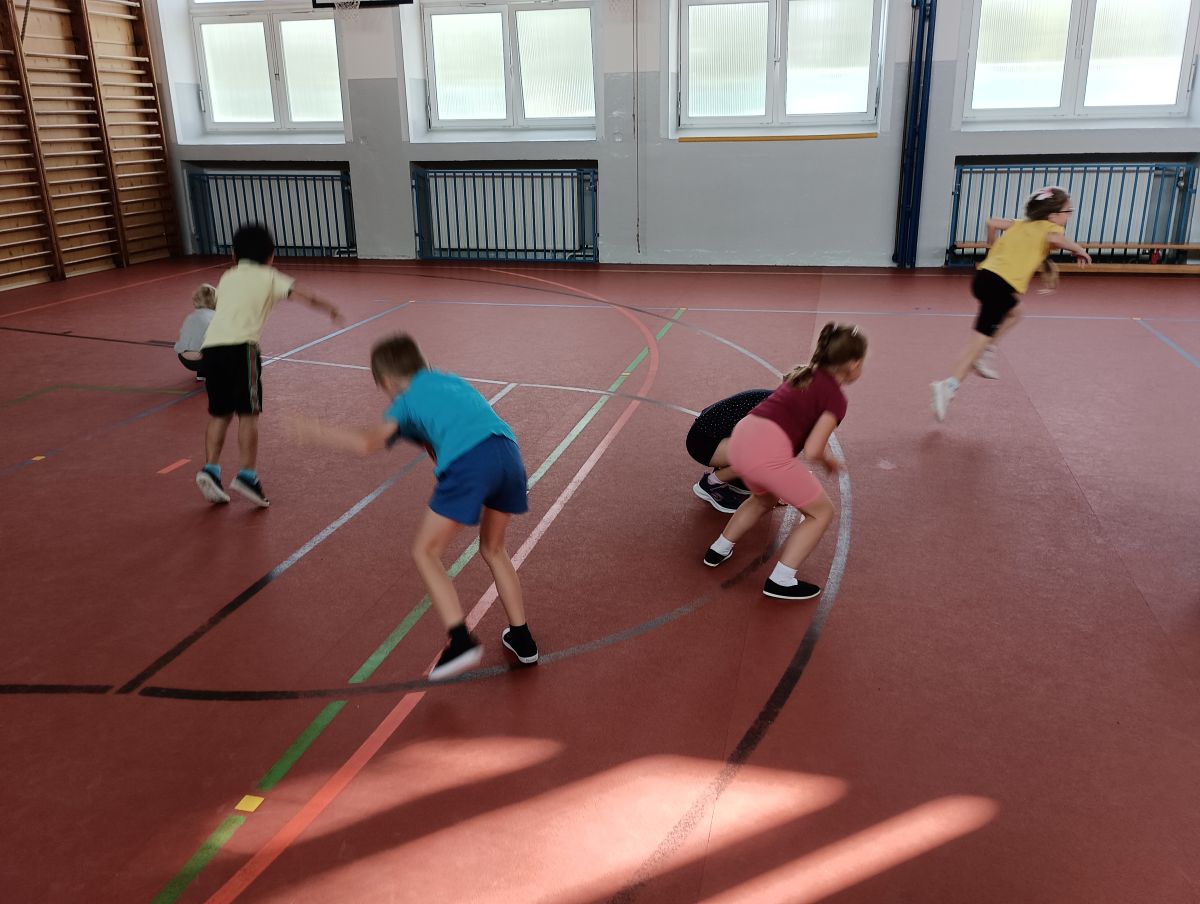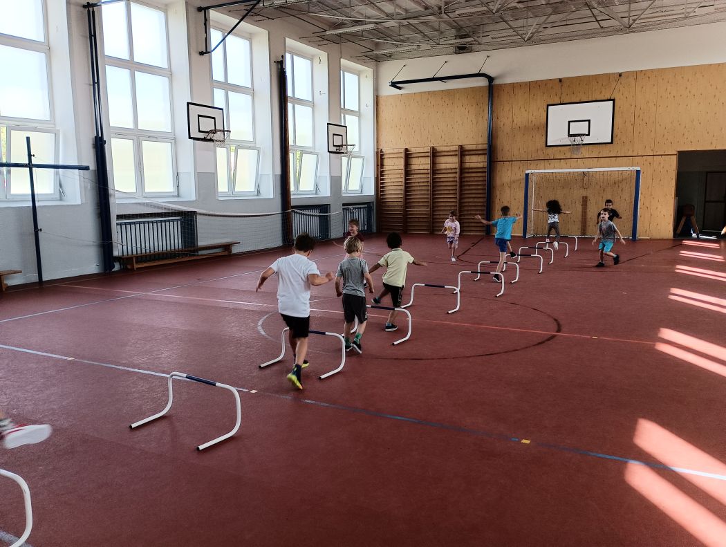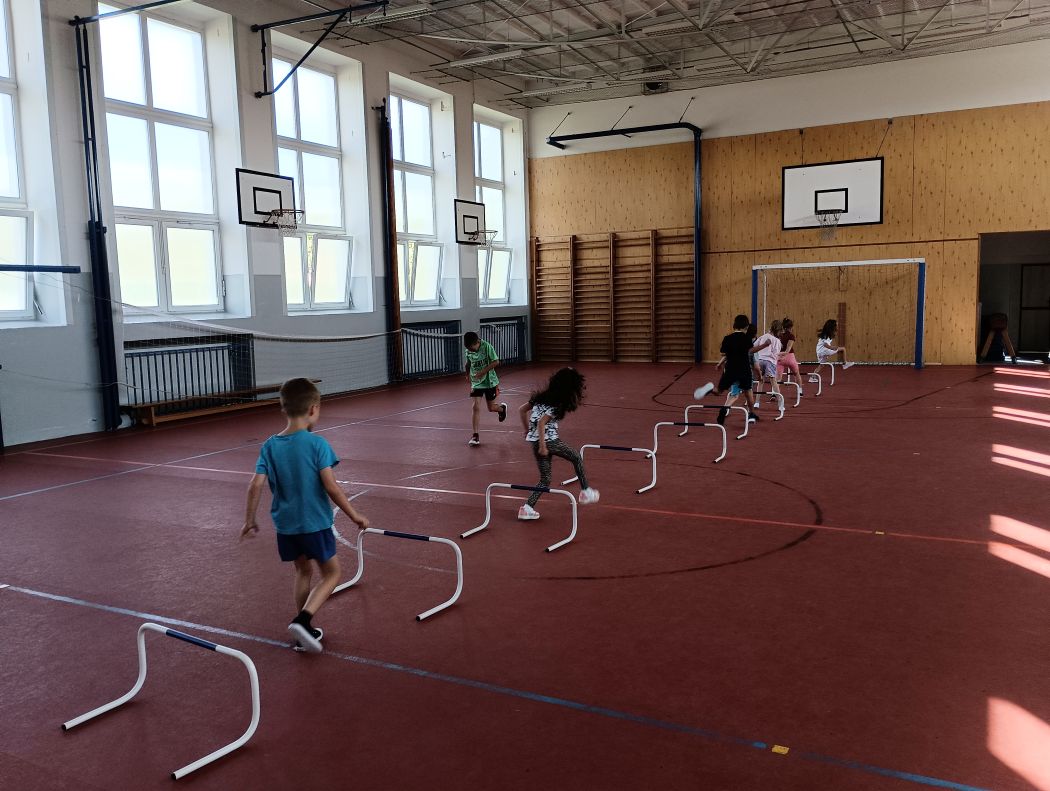 Fotografie | 1.A | Publikováno dne 11. 09. 2025 | Publikoval Mgr. Kamila BoušováPři tělesné výchově si hrajeme na zvířátka, skáčeme přes překážky, házíme s míčem.