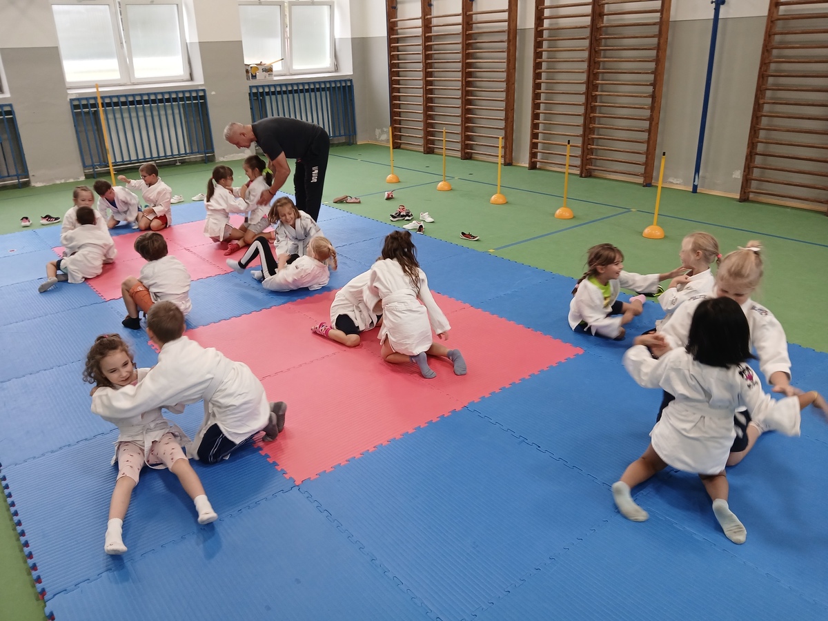 Fotografie | 2.A | Publikováno dne 05. 10. 2024 | Publikoval Mgr. Klára StehlíkováDruhá hodina s trenérem juda byla ve znamení soubojů. Po rozběhání a hře Na samuraje se děti podle instrukcí trenéra pustily do soubojů na žíněnkách. Učily se také pády a ze soubojů v kleku přešly na souboje ve stoje. Hodina byla pestrá, trenér děti poučil o bezpečnosti a děti se do soubojů pustily s chutí a vervou sobě vlastní.