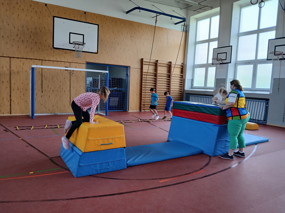 Fotografie | 2.A | Publikováno dne 27. 04. 2025 | Publikoval Mgr. Klára StehlíkováNa hodiny tělesné výchovy s trenéry se děti těší. Tentokrát si pro nás trenér pro všestranný pohybový rozvoj připravil závody družstev, překážkovou dráhu a průpravná cvičení pro basket. Děti se moc snažily, byly neustále v pohybu, jednotlivá cvičení a úkoly plnily pilně a s radostí. Rádi se hýbeme!