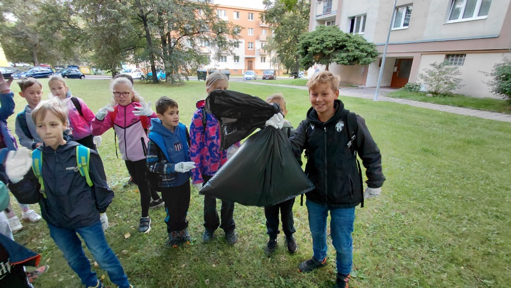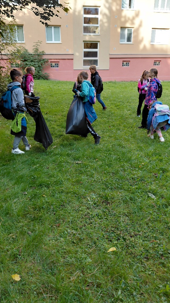 Fotografie | 4.B | Publikováno dne 17. 09. 2025 | Publikoval Mgr. Jana HanzlováDnes jsme se zapojili do akce Ukliďme Česko. Navlékli jsme pracovní rukavice a s nadšením se vrhli do sbírání odpadků v okolí dětských hřišť v řetenickém sídlišti.