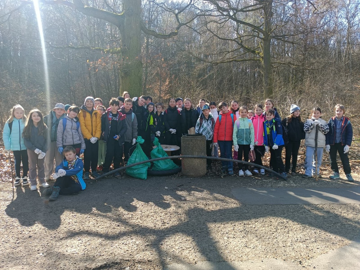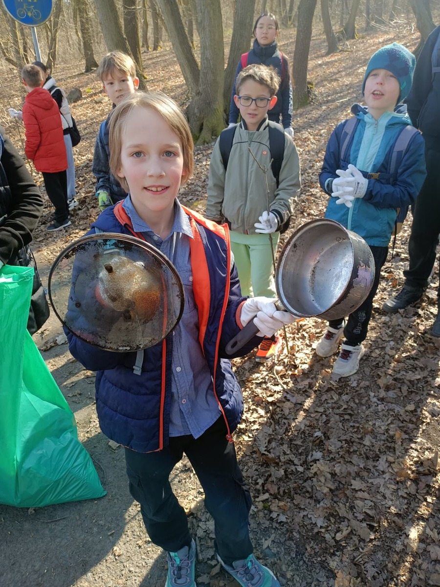Fotografie | 4.A, 4.B | Publikováno dne 29. 03. 2026 | Publikoval Mgr. Venuše AntoniszynováV pátek 27. března jsme se my, kamarádi ze 4.A a 4.B vypravili do nedalekého Lesoparku zkontrolovat, jak po zimě vypadá příroda kolem nás. A jak to dopadlo? Od naší podzimní úklidové akce se v přírodě objevilo velké množství odpadů, které jsme tam samozřejmě nemohli nechat. Nasbírali jsme čtyři velké pytle, a některé odpadky jsme museli dokonce položit vedle, protože se nám do pytlů nevešly. Nejúspěšnějším sběračem byl vyhlášen Hordii, kterému se podařilo objevit opravdové poklady.