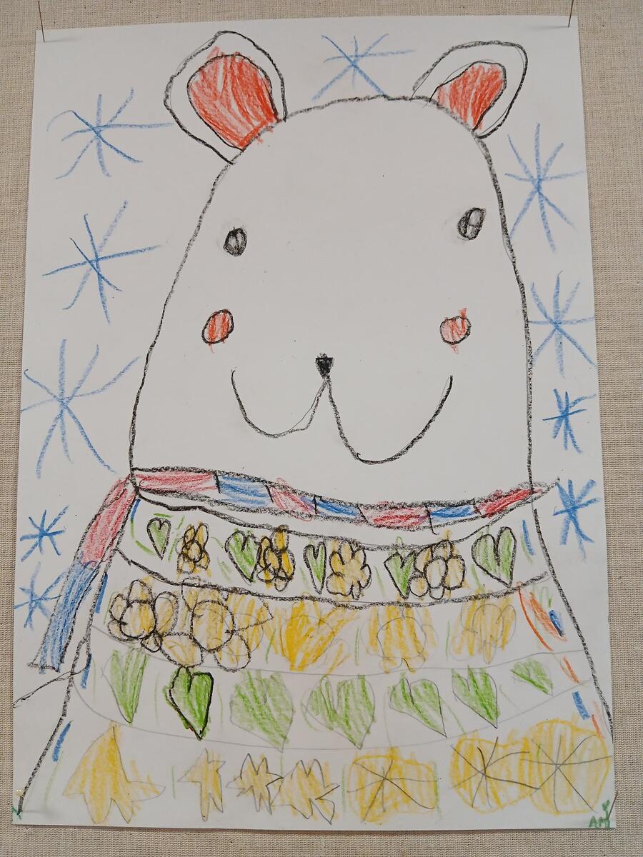 Fotografie | 2.A | Publikováno dne 15. 12. 2024 | Publikoval Mgr. Klára StehlíkováPři výtvarné výchově jsme kreslili medvědy. Oblékli jsme je do teplých svetrů, aby jim nebyla zima.