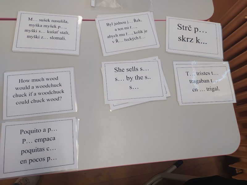 Deváťáci si vyzkoušeli, jaké to je připravit si aktivity pro různě staré děti, zorganizovat práci, a hlavně svoje „studenty“, všechny ve skupině zaměstnat, skupinku ukočírovat. A to několikrát dokola. Všichni ostatní si prověřili svůj jazykový cit, znalosti a určitě se i něco nového dozvěděli, co v následujících hodinách s chutí nám učitelům při výuce prodali.