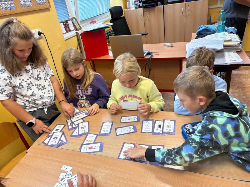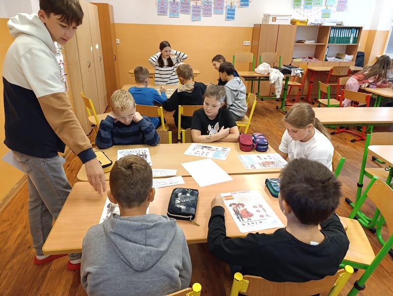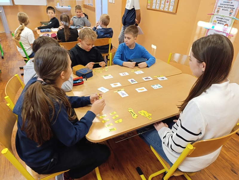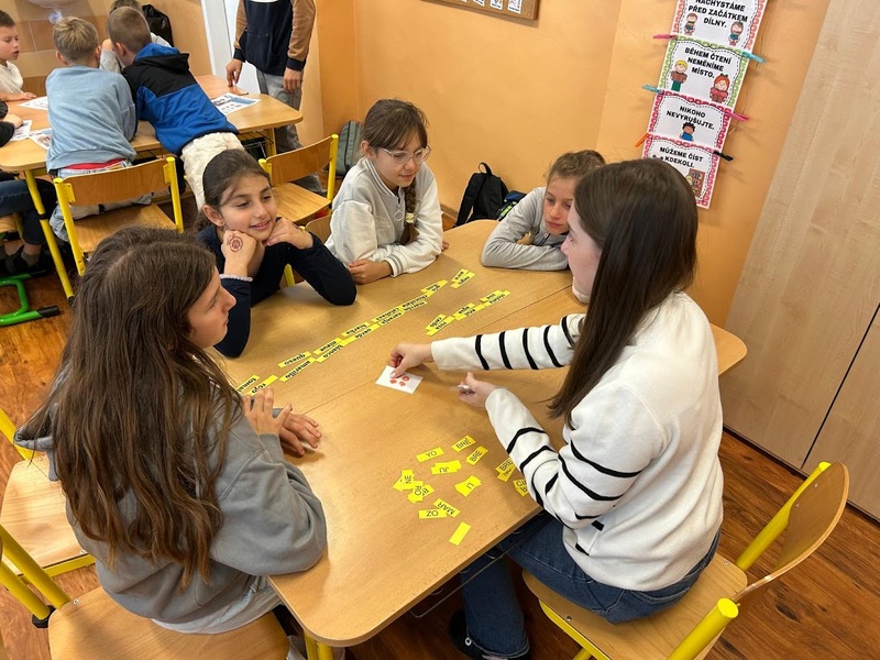 V pátek dne 26. 9. 2025 si deváťáci připravili jazykové hry a úkoly pro žáky I. stupně. Pro své mladší spolužáky si letošní mladí jazykoví trenéři nachystali aktivity, aby během tří vyučovacích hodin každá třída, každá skupinka a vlastně i každý žák celkem 12 stanovišť vystřídal. Všichni dostali pořádně do těla i do hlavy jazykovou nalejvárnu. Následující pondělí dne 29. 9. 2025 jsme takto jazykově potrápili všechny žáky druhostupňové. Minimálně o hodinu více a level výše, ať to pro ně není tak jednoduché!